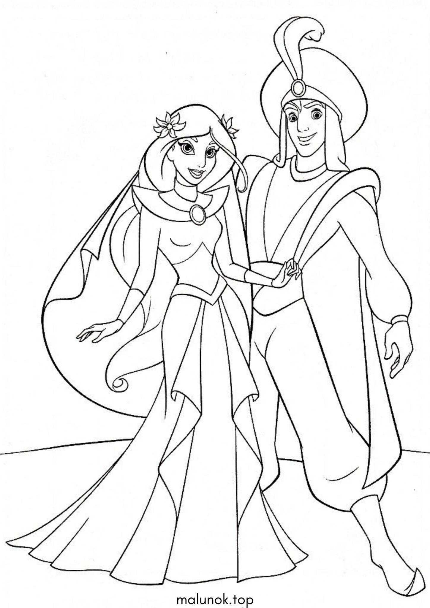 Розмальовка Аладдін та Жасмін
