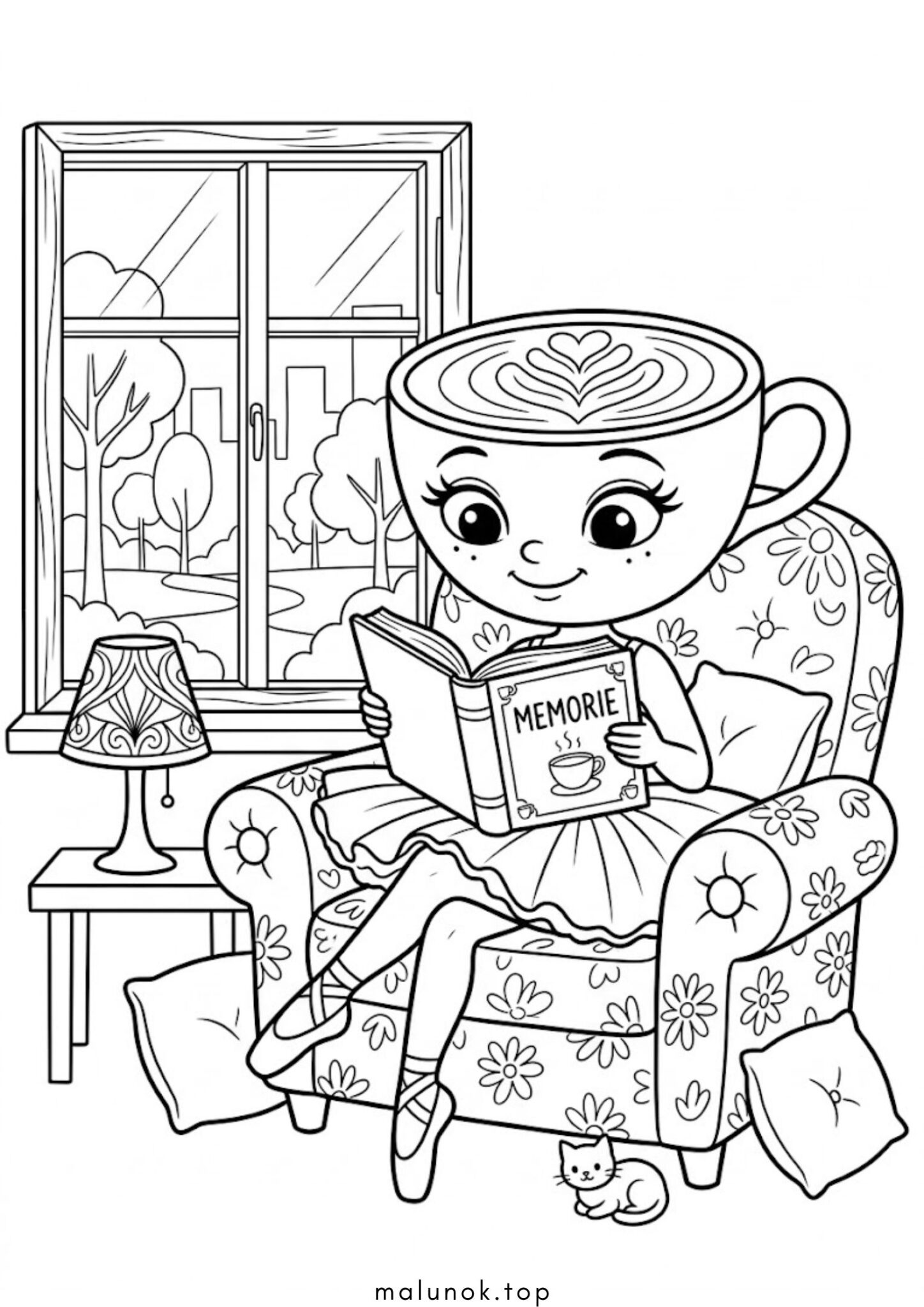 Розмальовка Балерина Капучино читає книгу