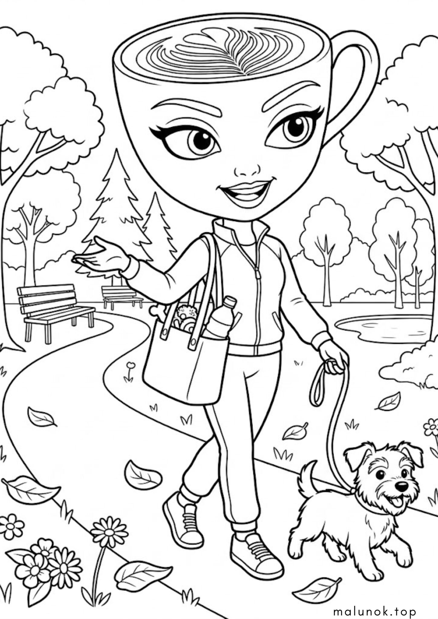 Розмальовка Балерина Капучино вигулює собачку