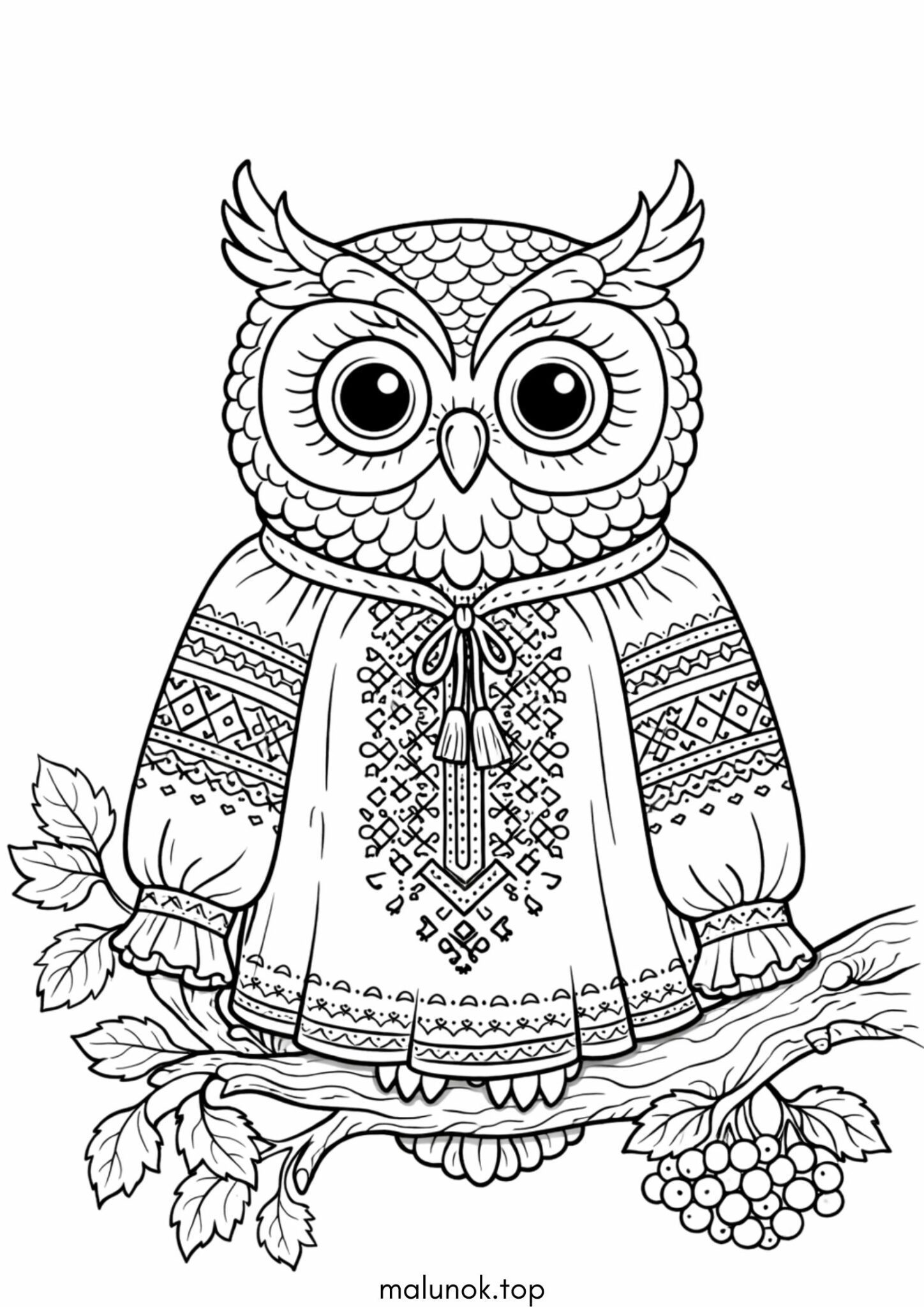 Розмальовка До дня вишиванки – Сова у вишиванці