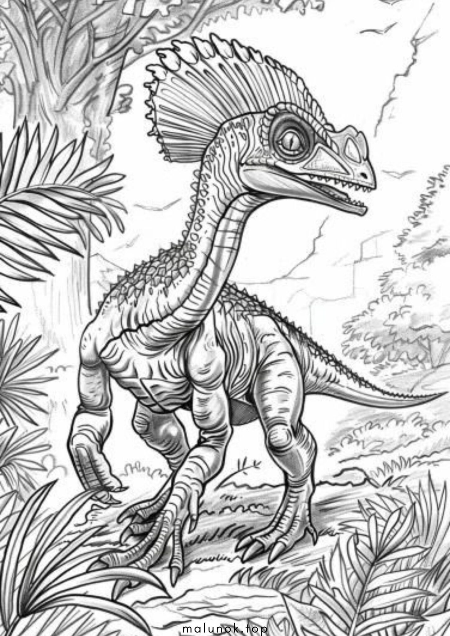 Розмальовка Динозавр – Дилофозавр