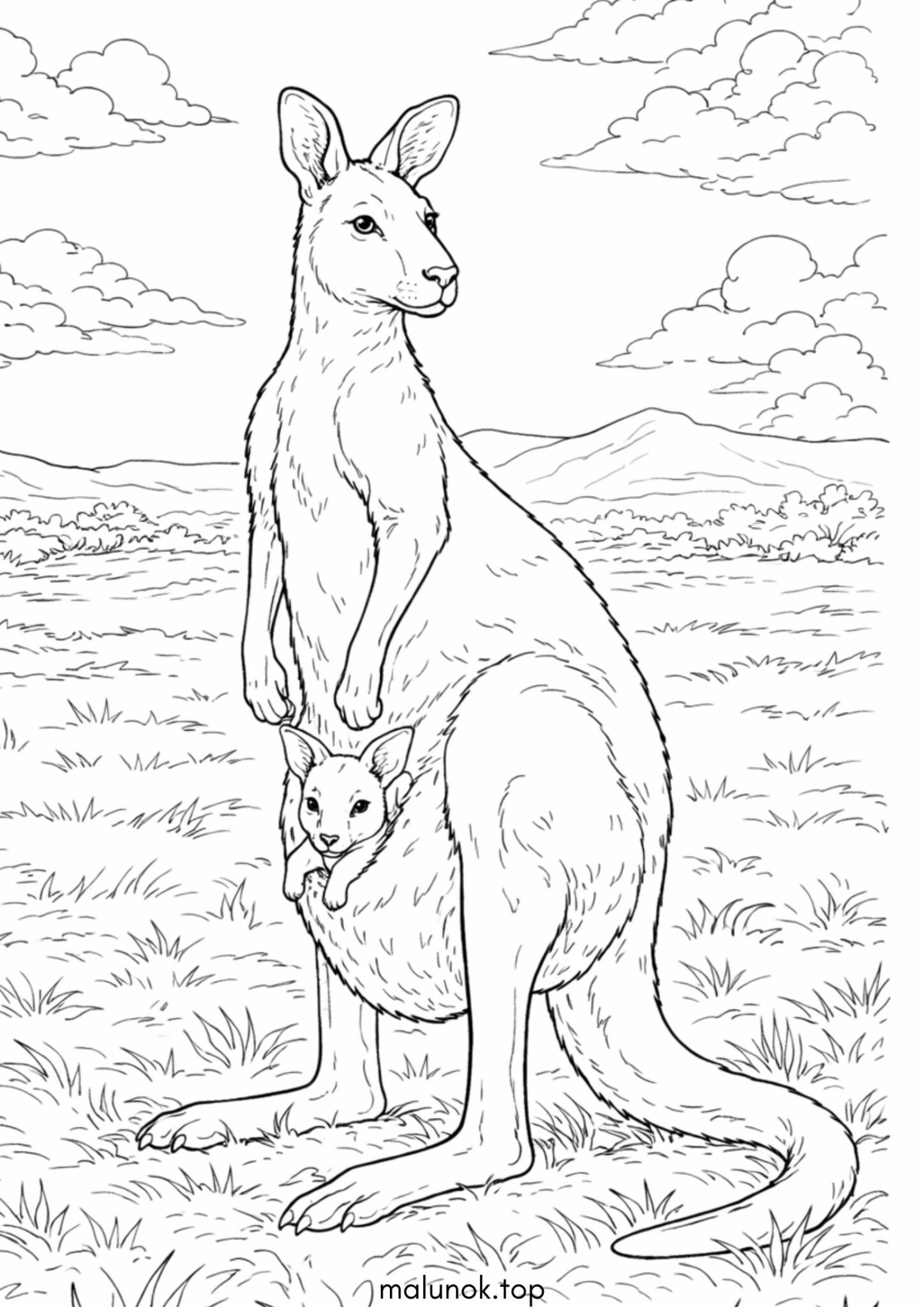 Розмальовка Кенгуру з дитиною