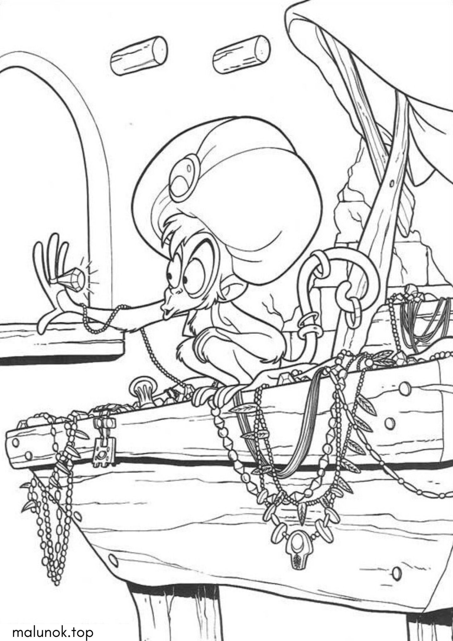 Розмальовка Мавпа Абу з прикрасами (Аладдін)
