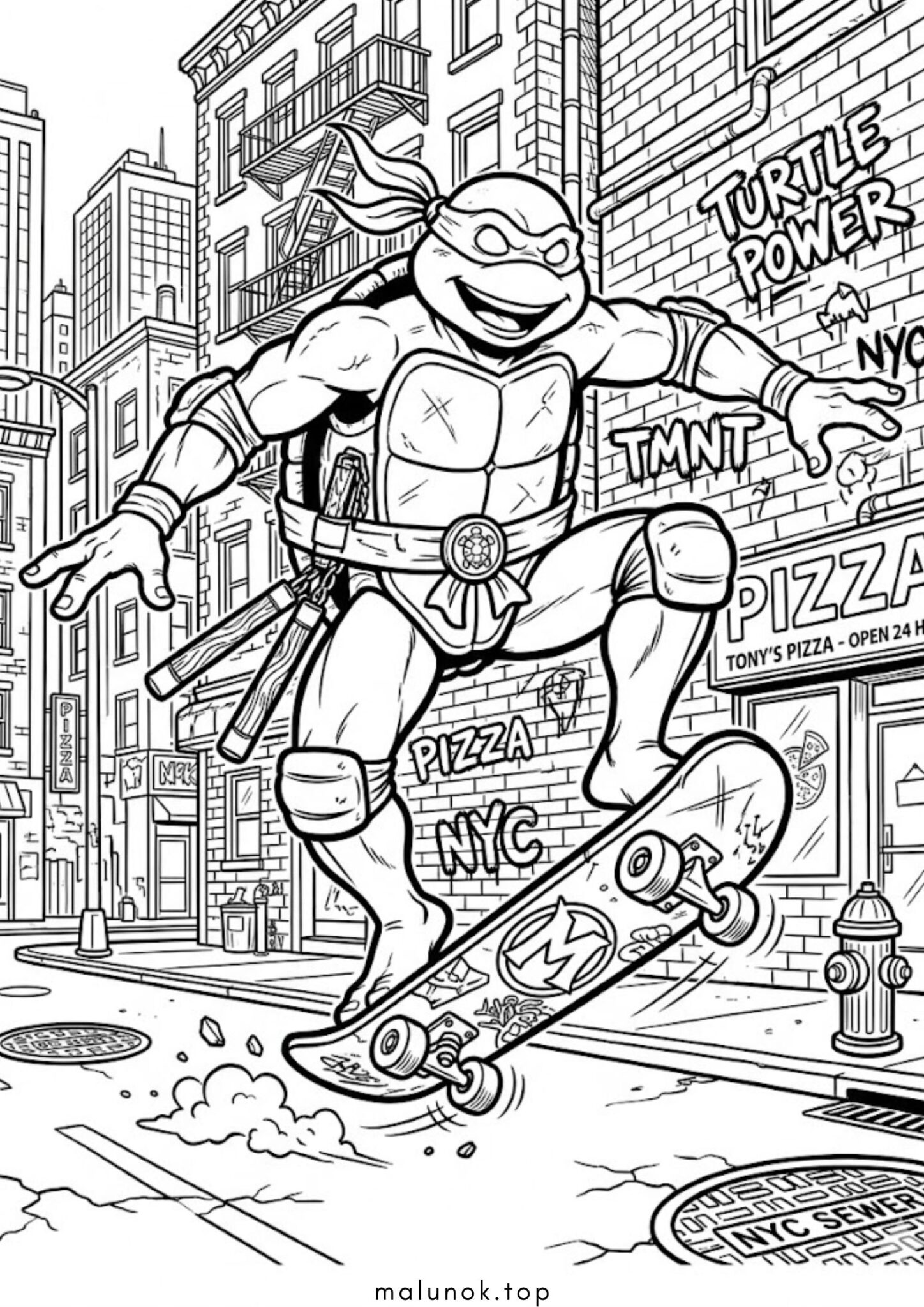 Розмальовка Мікеланджело на скейті (Черепашки-ніндзя)