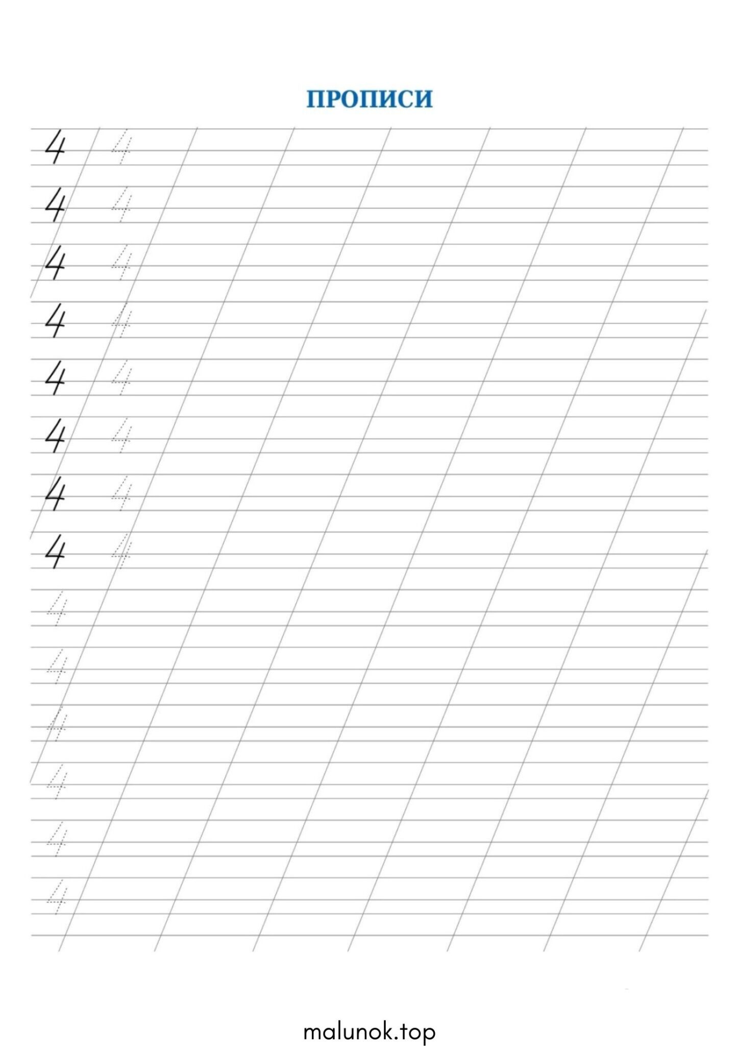 Прописи цифри 4 (чотири)