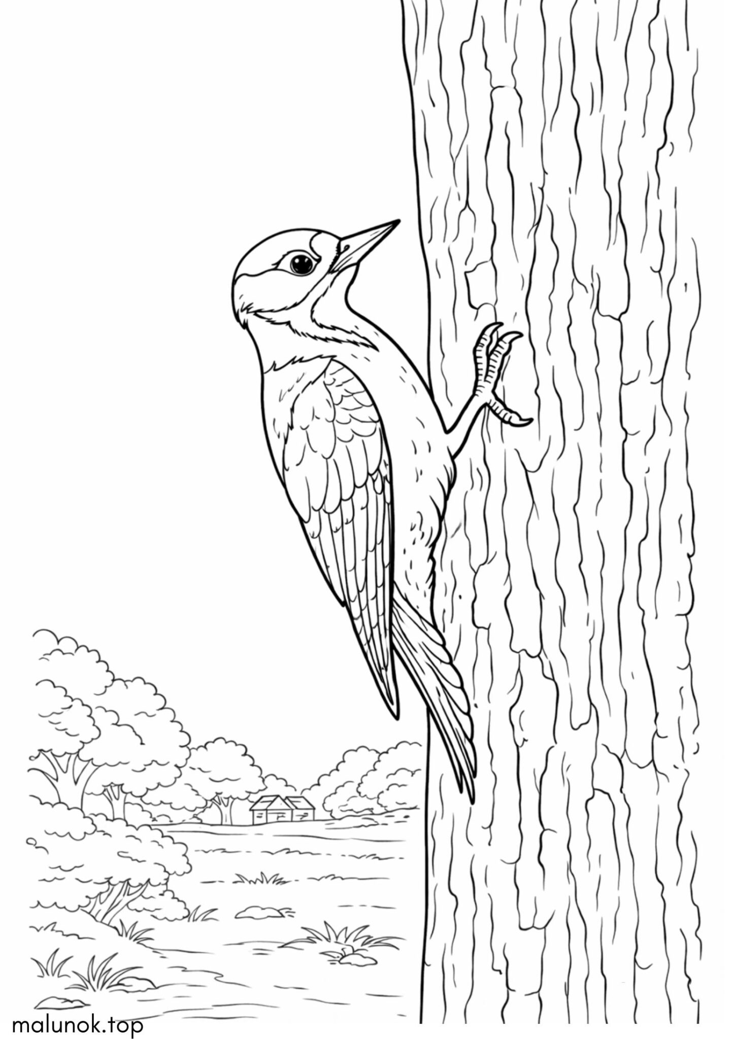 Розмальовка Птах Дятел на дереві
