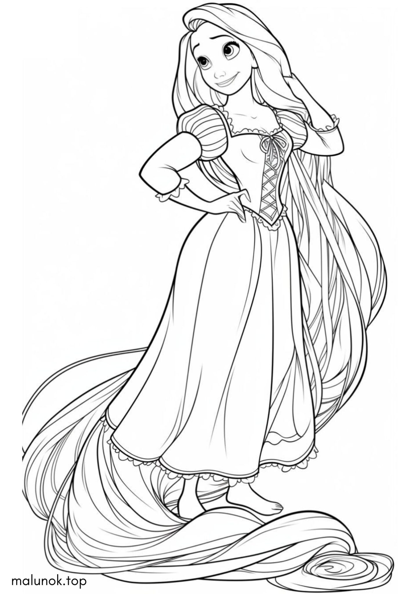 Розмальовка Рапунцель розпустила волосся
