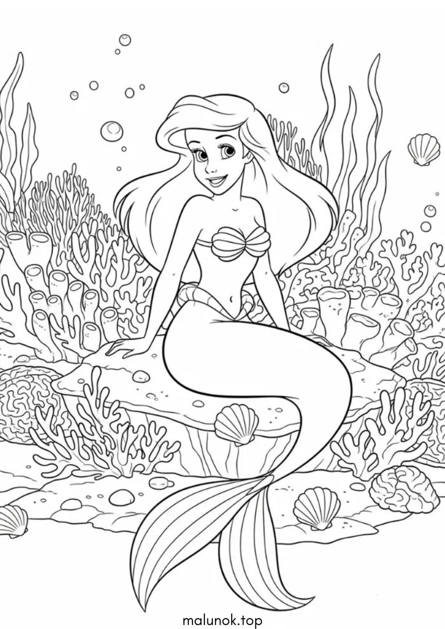 Розмальовка Русалонька на морському дні