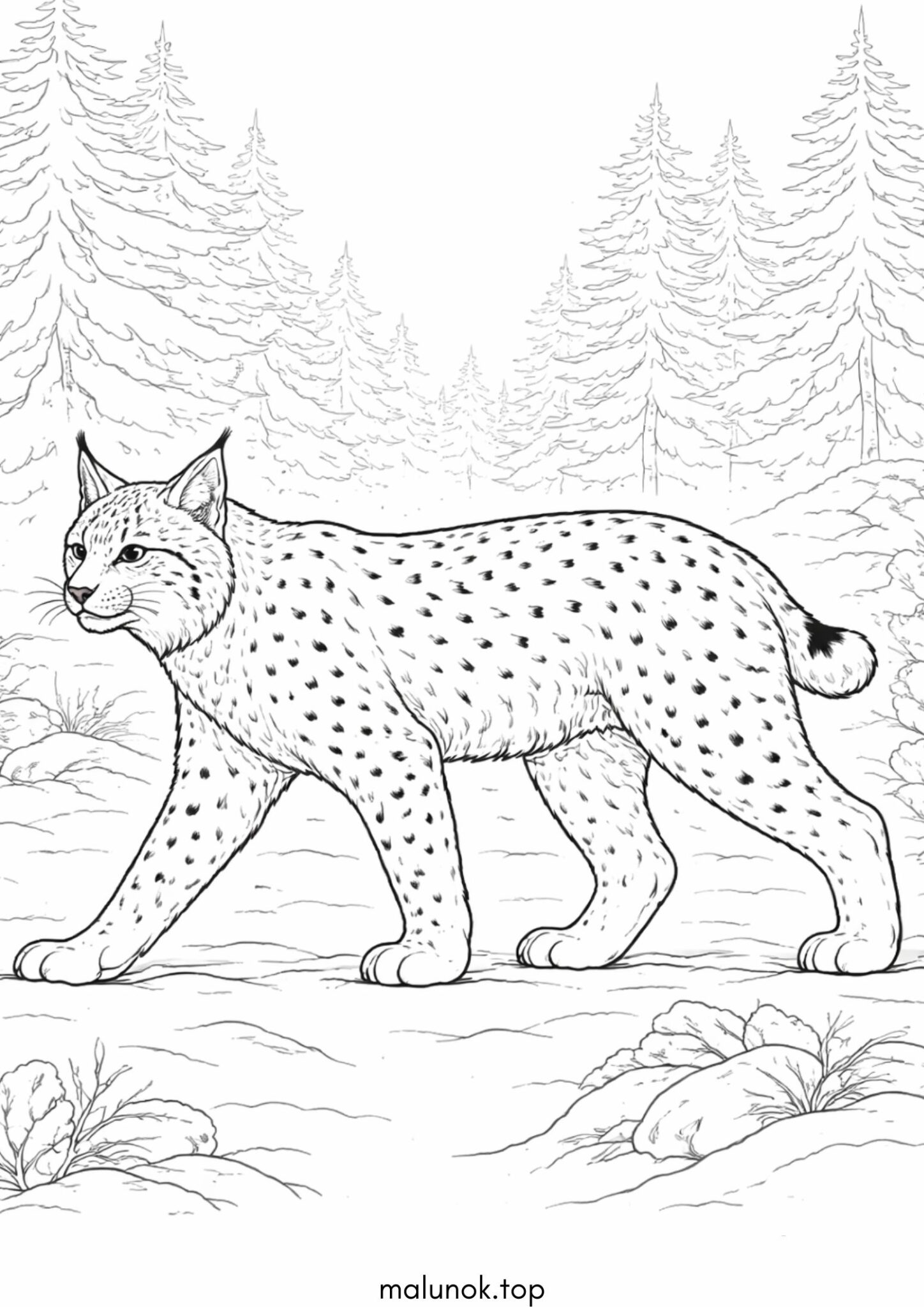 Розмальовка Рись у лісі