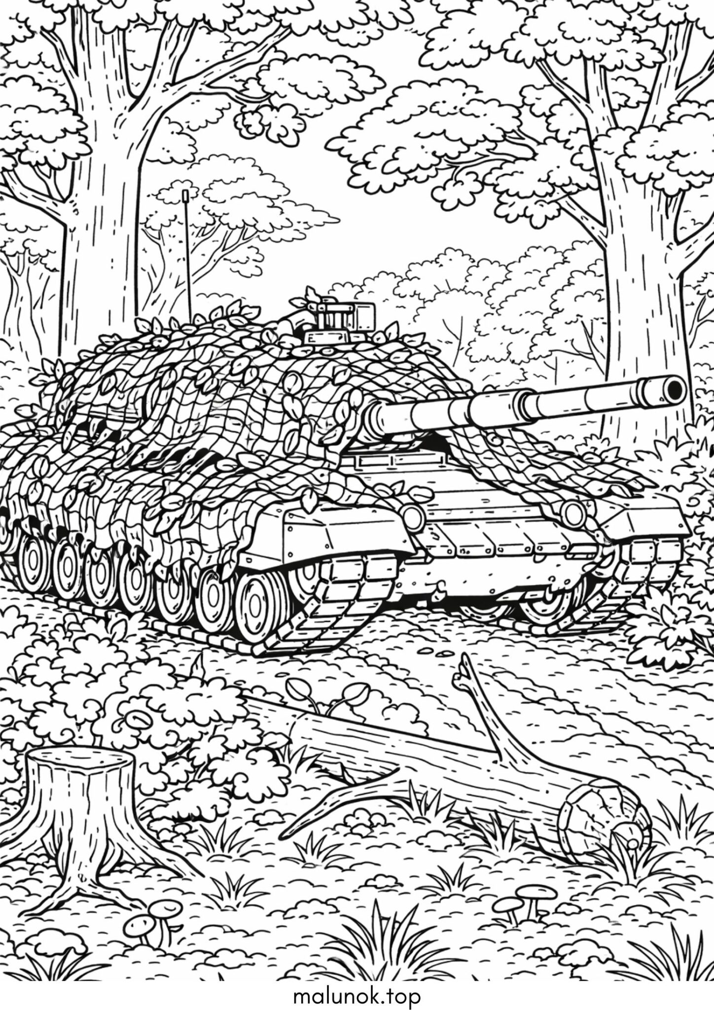 Розмальовка Танк у лісі (маскування)